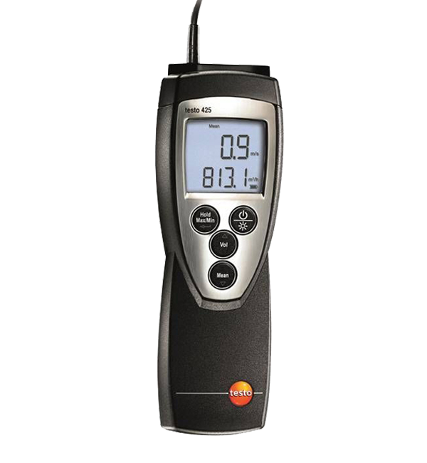 testo 425 熱線風(fēng)速儀,伸縮式手柄(延伸長度820mm),配有風(fēng)速和溫度探頭,電池,附有出廠報(bào)告。