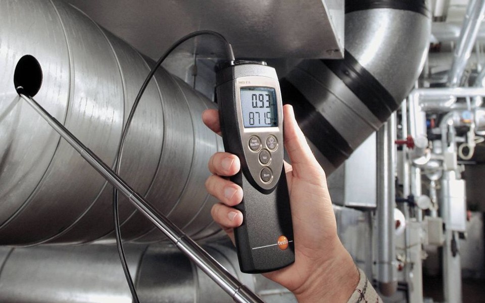 testo 425 熱敏風(fēng)速儀用于測(cè)量風(fēng)速,并自動(dòng)計(jì)算風(fēng)量。通風(fēng)和空調(diào)系統(tǒng)的功能測(cè)試包括通風(fēng)管內(nèi)風(fēng)速的監(jiān)測(cè)