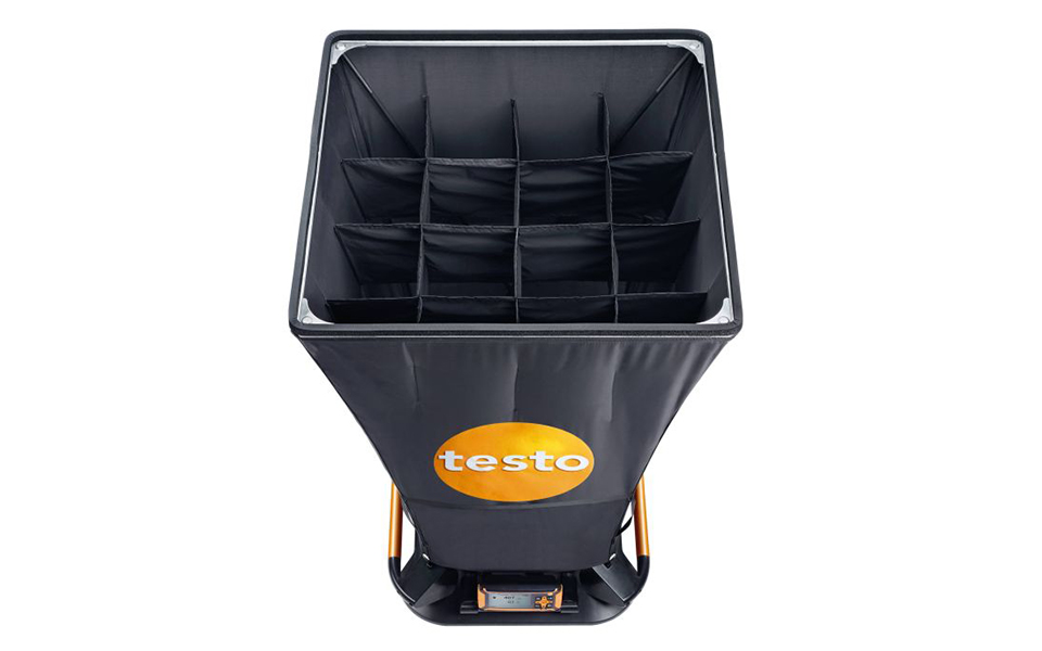 testo 420 風(fēng)量罩可有效減少測量誤差。內(nèi)置氣流整流柵可有效降低渦流,均勻氣流,從而實現(xiàn)風(fēng)量在 80~3,500 m3/h之間精準(zhǔn)測量。