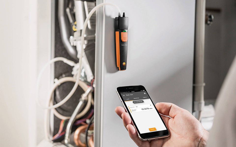 testo 510i 無線迷你差壓測量儀結(jié)合專業(yè)的測量技術(shù)和智能手機(jī)操作,用于測量壓差、空氣流速和體積流量。測量讀數(shù)可以通過 testo Smart APP 智能應(yīng)用程序方便地在智能設(shè)備(手機(jī)/平板電腦上)進(jìn)行查看,并通過電子郵件直接發(fā)送。