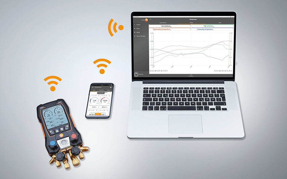 testo 557s - 帶藍(lán)牙和四通閥組的智能數(shù)顯冷媒表