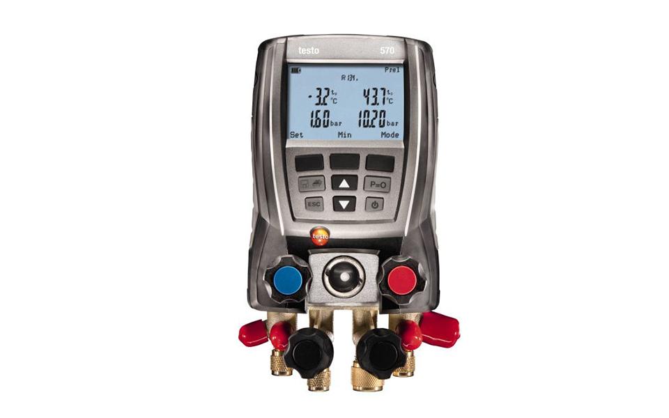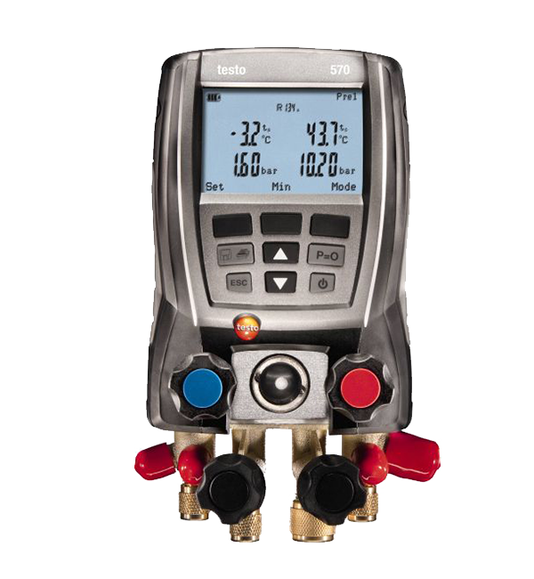 testo 570 專業(yè)級電子冷媒表組套裝,帶2個溫度補償?shù)膲毫鞲衅?,快速可靠的進行高壓及低壓測量,可同時連接3個溫度探頭,實時計算過熱/過冷值,并且可測量周圍環(huán)境溫度,如冷藏室。