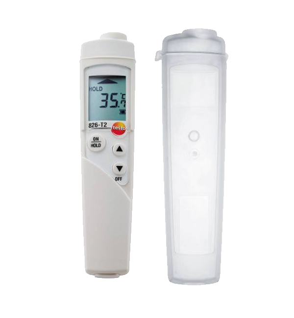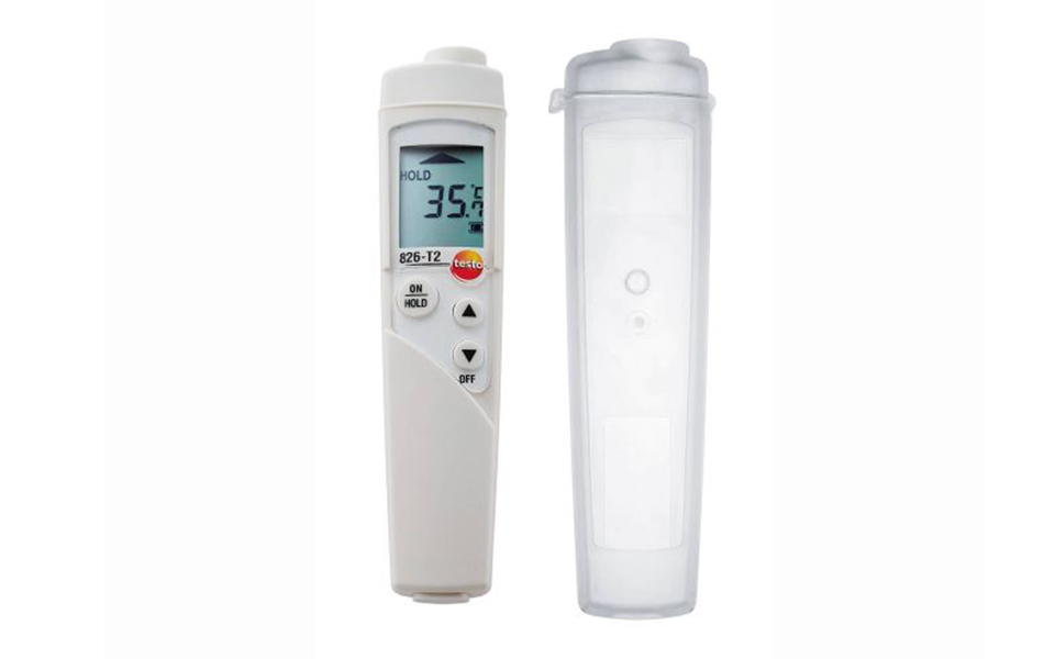 testo 826-T2 紅外測溫儀,包含保護(hù)軟套,支架和電池。