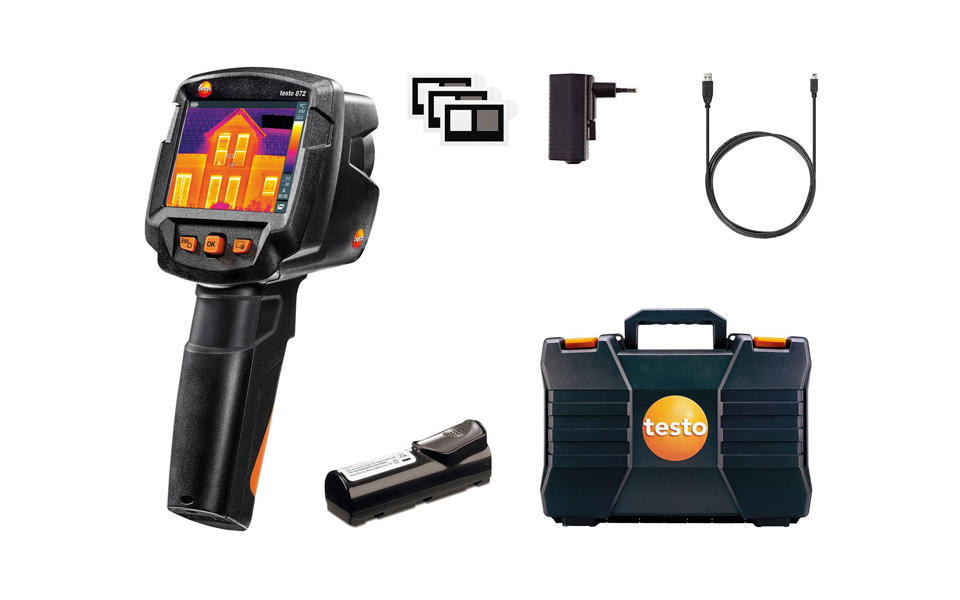 testo 872標(biāo)配BT/WLAN模塊,USB數(shù)據(jù)線,電源適配器,鋰電池,3個(gè)德圖發(fā)射率標(biāo)簽,說明書,校準(zhǔn)證書以及儀器箱。
