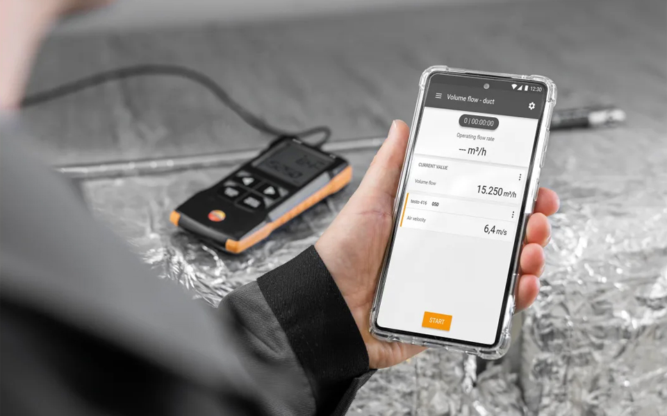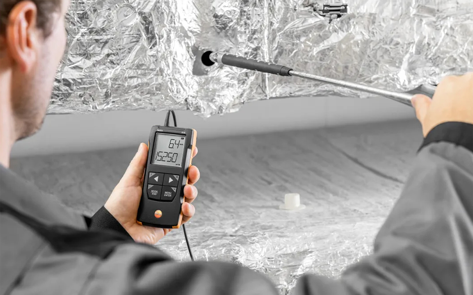 使用帶有伸縮探頭和可連接App的16mm葉輪風速計testo 416,您可以輕松、快速、精確地在空調和通風系統(tǒng)的通風管道中進行風速測量。
