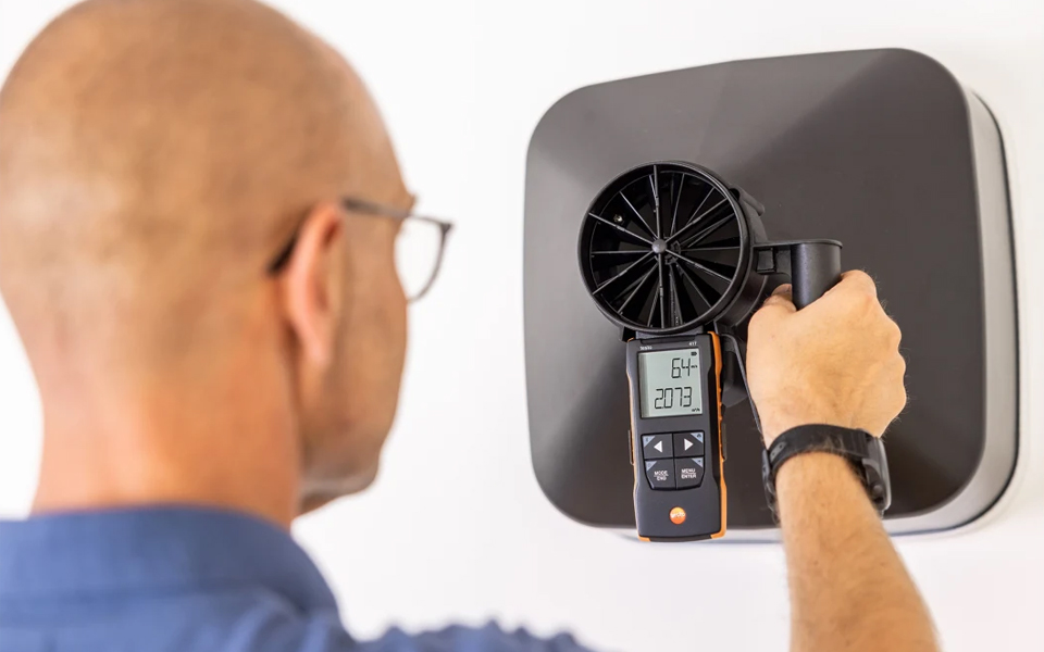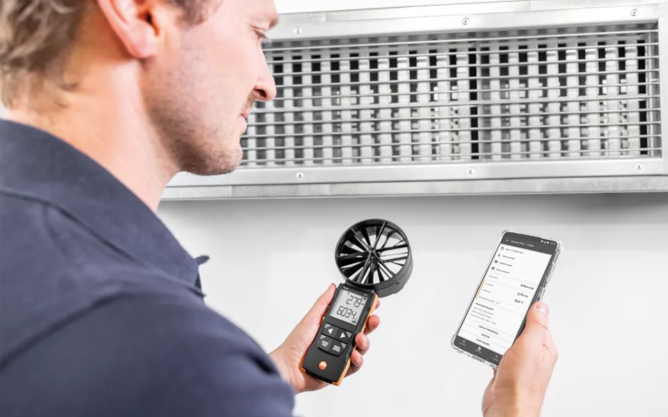 testo 417葉輪風(fēng)速計(jì),快速精確地測(cè)量空調(diào)和通風(fēng)系統(tǒng)進(jìn)風(fēng)口和出風(fēng)口風(fēng)速風(fēng)量。有效調(diào)節(jié)住宅平衡通風(fēng),并使用testo Smart APP快速地記錄。