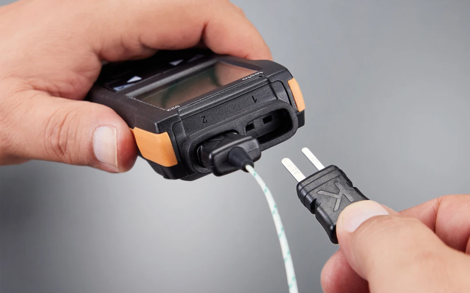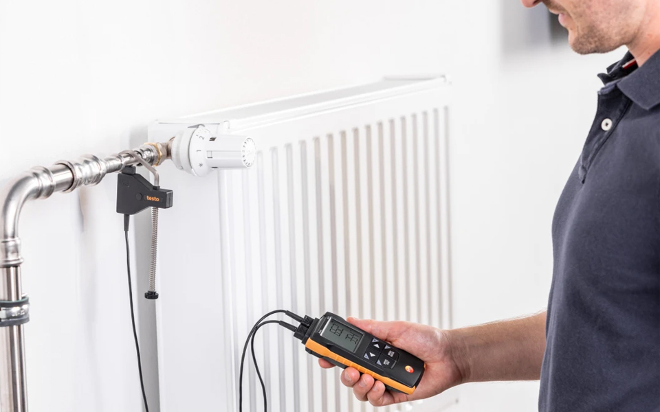 使用雙通道溫度測量儀testo 922(隨機標(biāo)含2個K型熱電偶),可以簡單快速和精確地獲得溫差值。即刻掌控供暖回路上的供水/回水溫度。